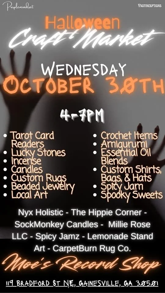 Feel the Spooky Vibes of Halloween while you shop local art, treats, and crafters creations at Moe’s Record Shop.